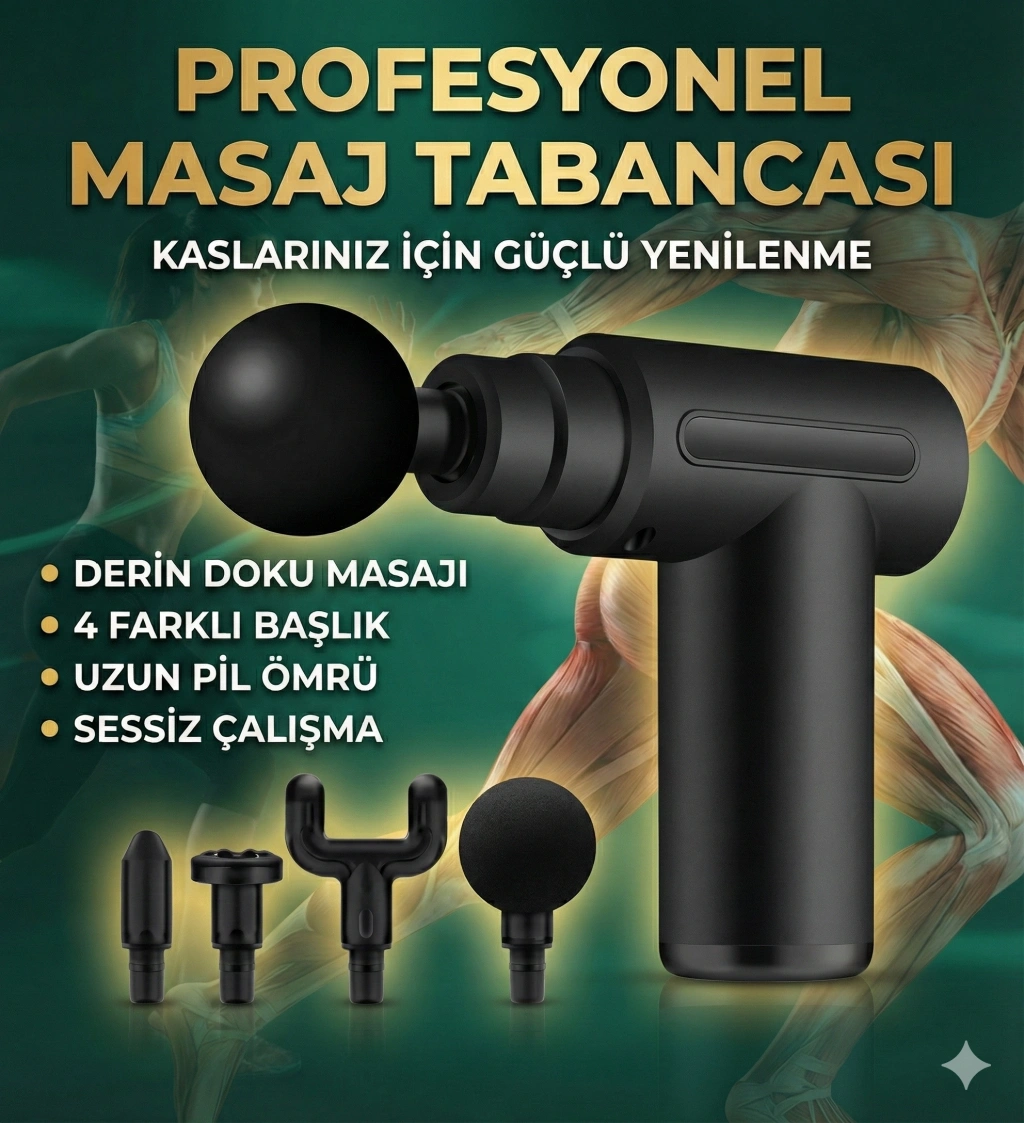 Masaj Tabancası Şarj Edilebilir 4 Masaj Başlıklı Titreşimli Küçük Masaj Aleti ile kendinizi şımartın, kaslarınızı rahatlatın ve konforu her an yanınızda hissedin!