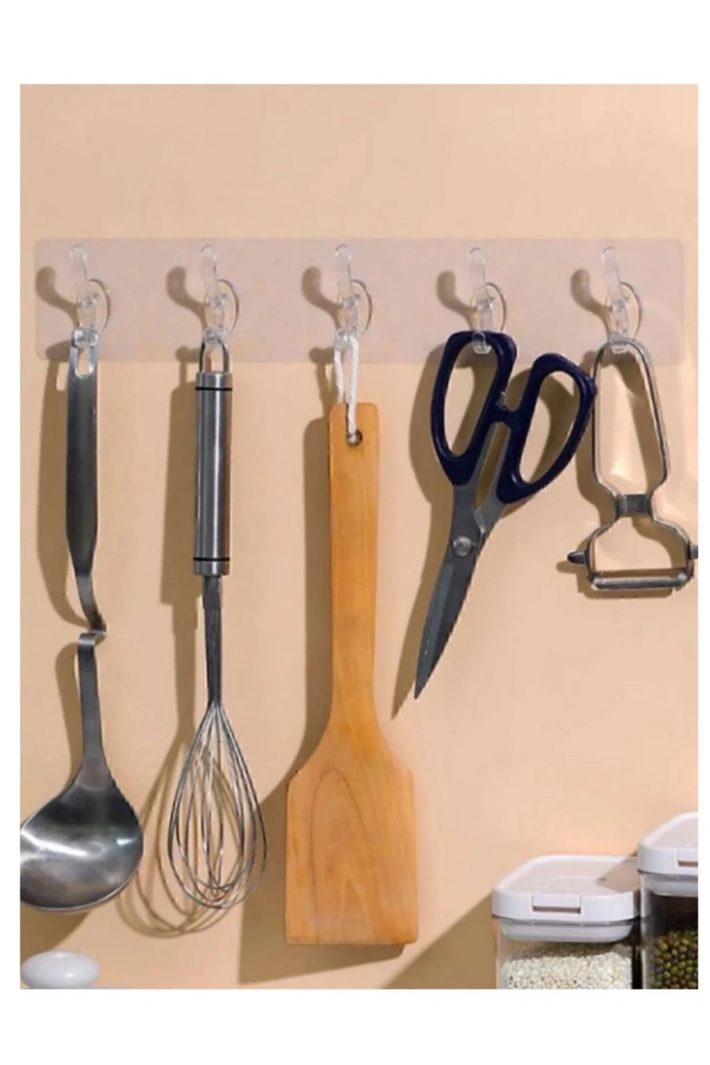 5'li Kendinden Yapışkanlı Güçlü Şeffaf Askılık - Kapı Arkası Mutfak Duvar Banyo Askı