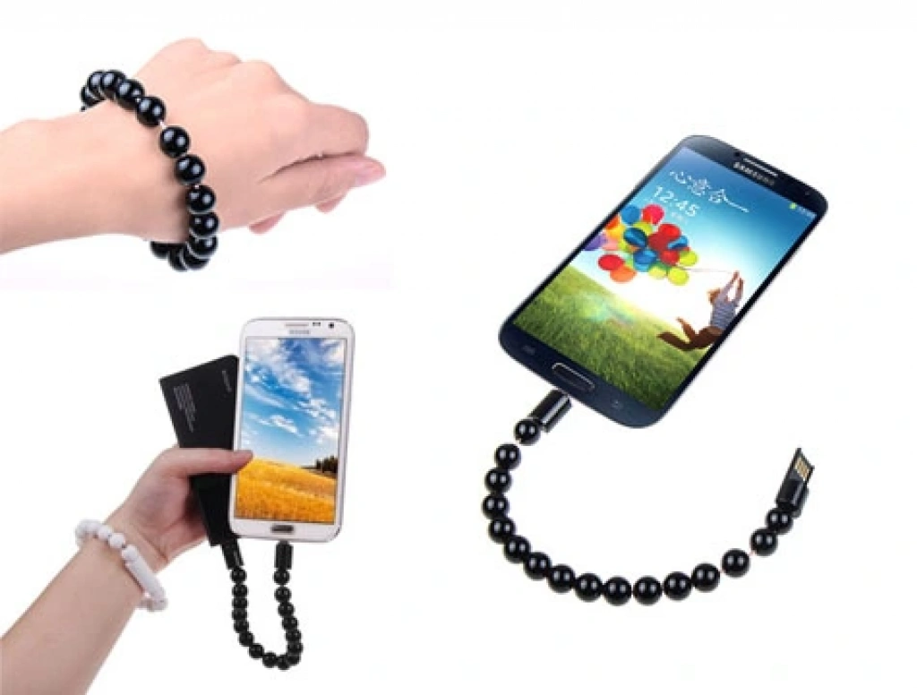 Şarj aletinizi sürekli yanınızda taşımanızı ve bir aksesuar olarak kullanmanızı sağlayacak olan Boncuk Tasarımlı Bileklik Şeklinde Data Kablosu!