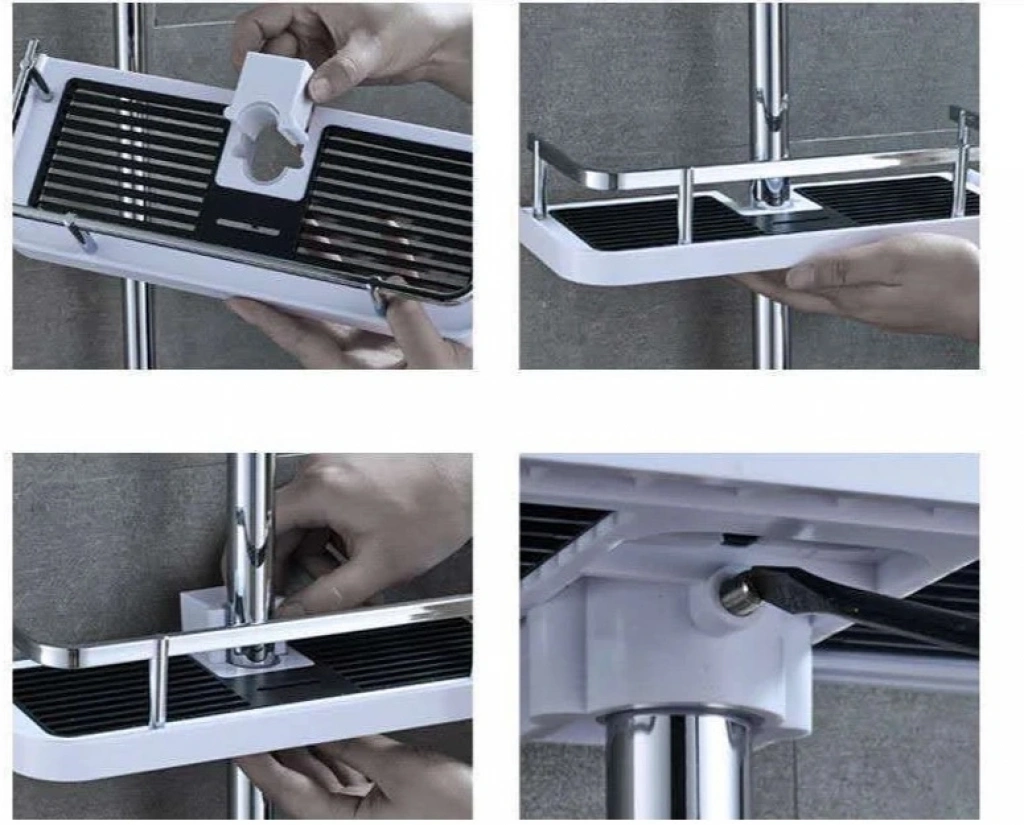 1) depolama rafını duş direğine kelepçeleyin.