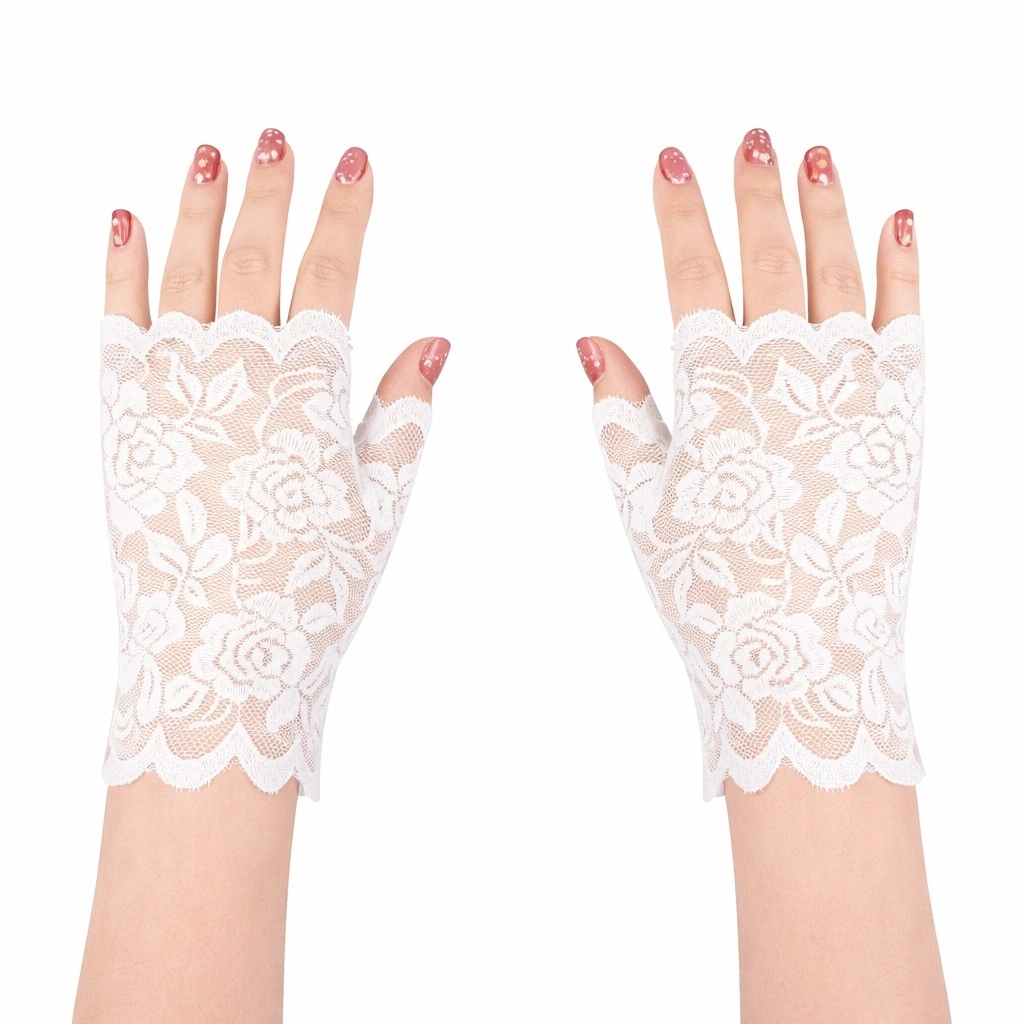 Zarif ve estetik tasarımıyla öne çıkan beyaz gül desenli dantel parmaksız eldiven, şık kombinler ve özel etkinlikler için ideal bir aksesuardır. İnce dantel dokusu ve gül desenli tasarımı ürüne zarif bir görünüm kazandırır.