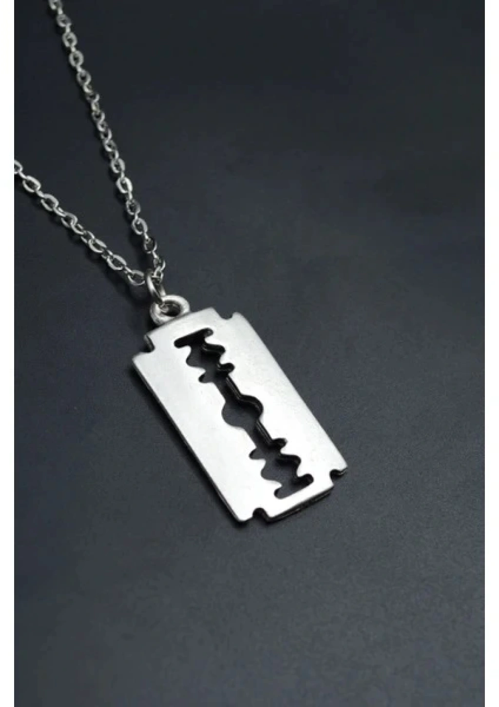 Jilet Çelik Kolye - Jilet Model Paslanmaz Gümüş Renk Çelik Kolye
