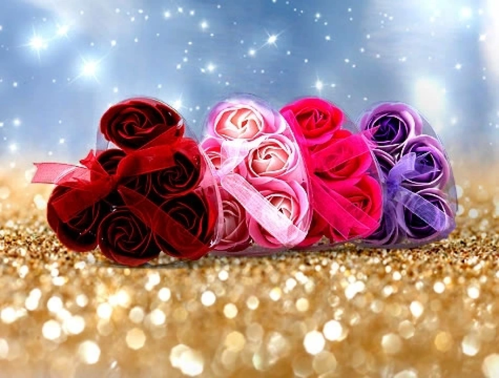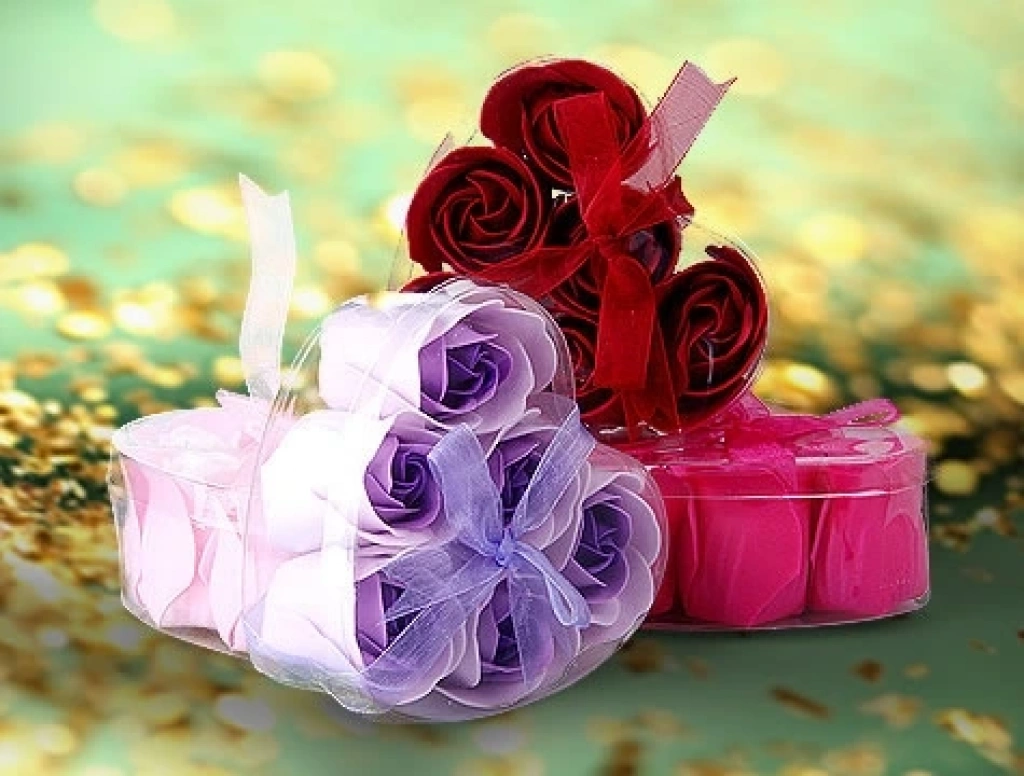 - 1 adet Kalp Kutulu Gül Şeklinde Sabun