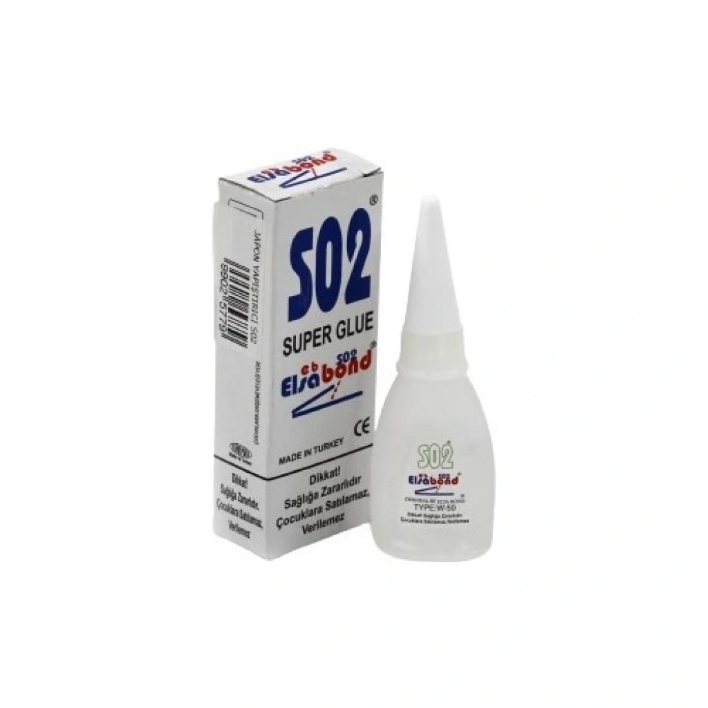 Hızlı yapıştırıcı elsa bond s02 japon yapıştırıcısı olarakta bilinen, 20 gr lık tekrar kullanılabilir tüplerde paketlenmiş, plastik, ahşap, seramik, kauçuk, deri, metal ve daha birçok yüzeyde kullanılabilen bir " japon yapıştırıcı " dır